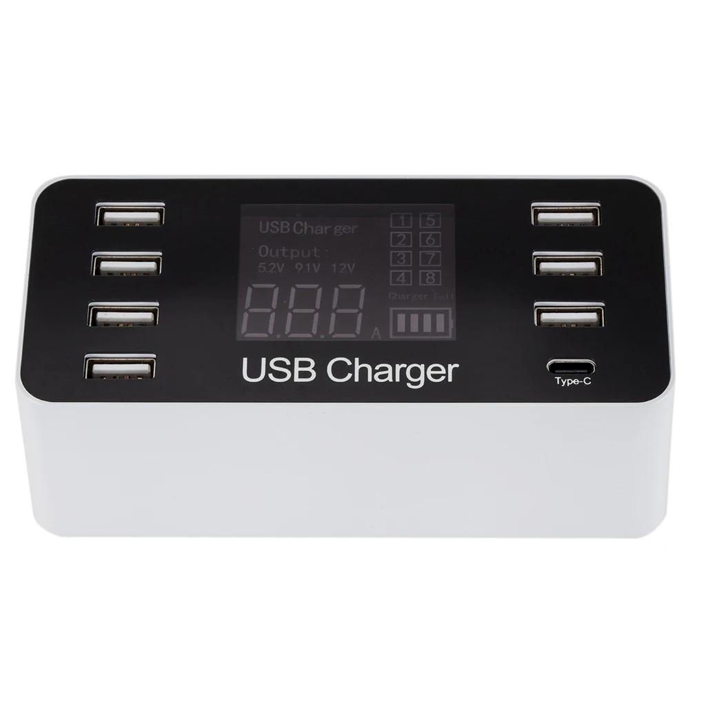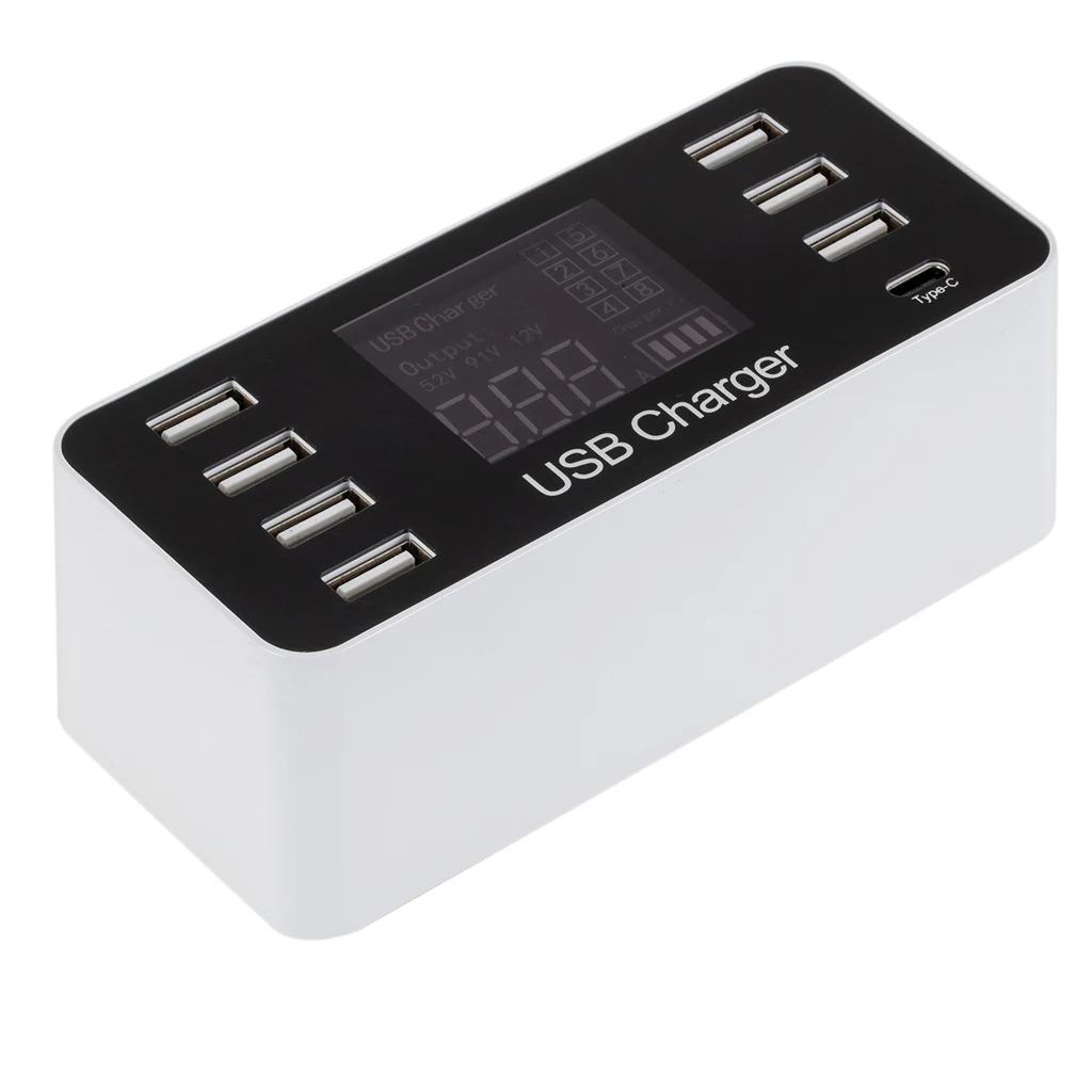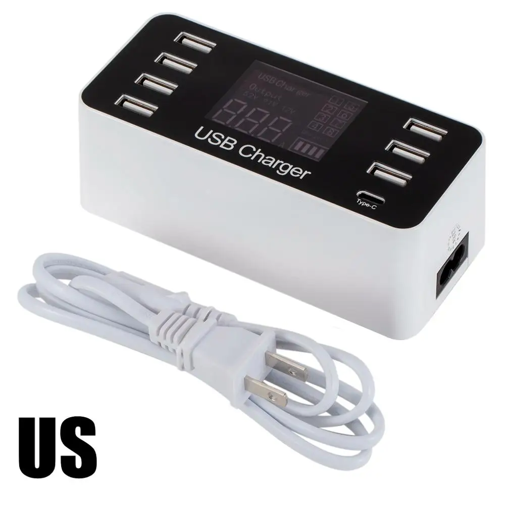 LED Dieplay phone charger 7 usb HUB type-c port Quick USB Mobile Phone Charger for Samsung Huawei A