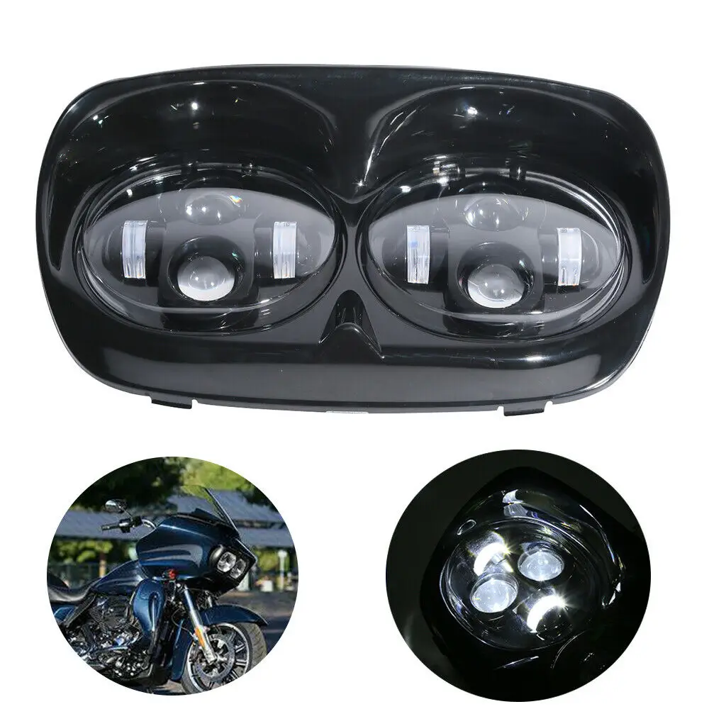 Motorcycle 5.75" Dual LED Headlight Projector Headlamp Lamp For Harley Road Glide 1998-2013
