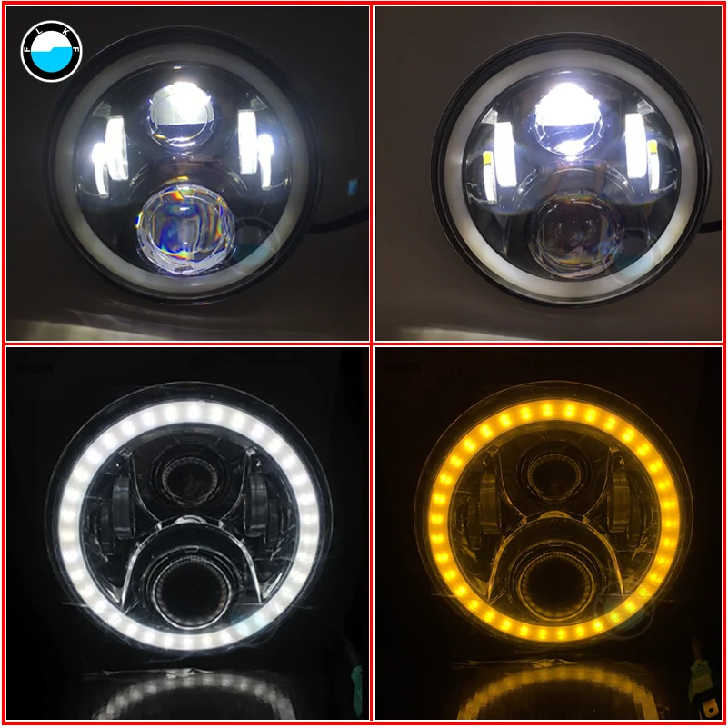 motorcycle 7inch Round Led Headlight High Low Beam Light Halo Angle For Jeep Wrangler Jk TJ Fj Humm