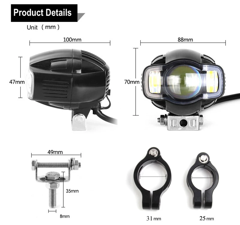 Motorcycle LED Auxiliary Fog Light Assemblie Driving Lamp 20W Headlight Kit Universal Fitment For H